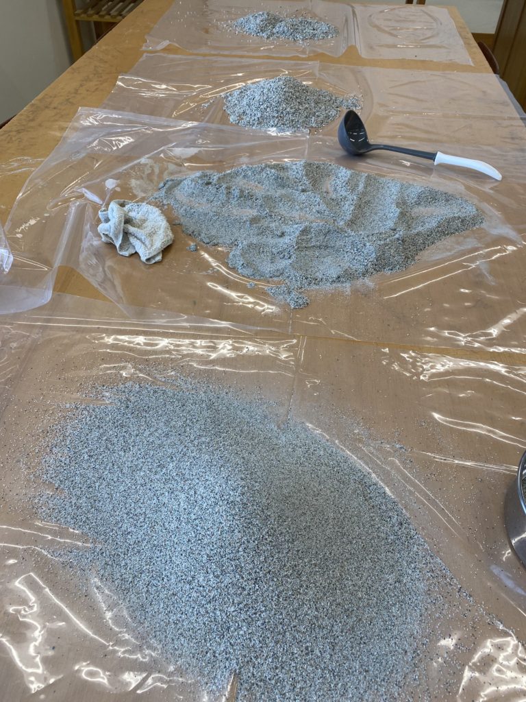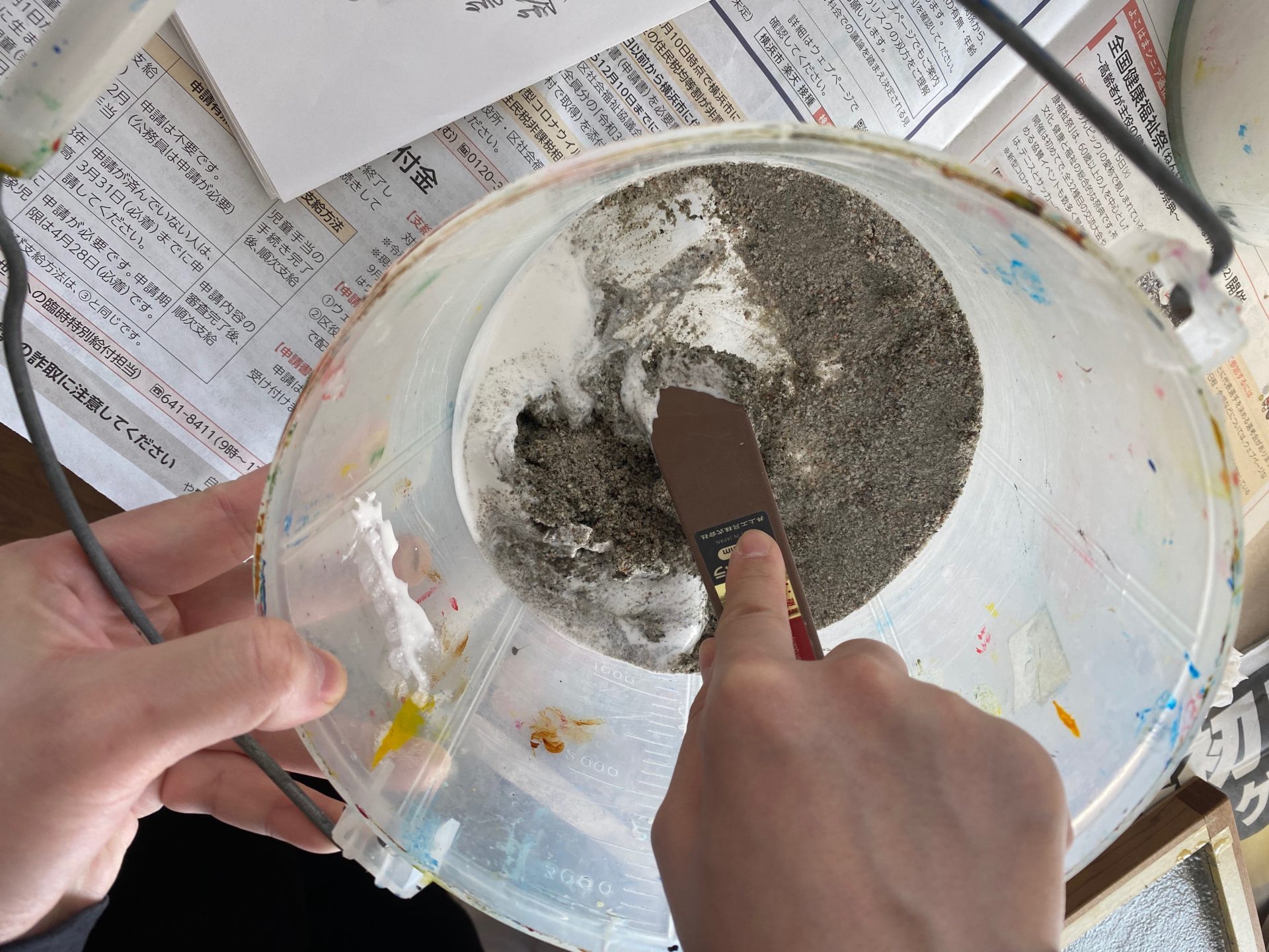 トゥルジラル(1層目)と最終層の3層目(イントナコ intònaco)塗りの違いは砂目の粗さと石灰の量。