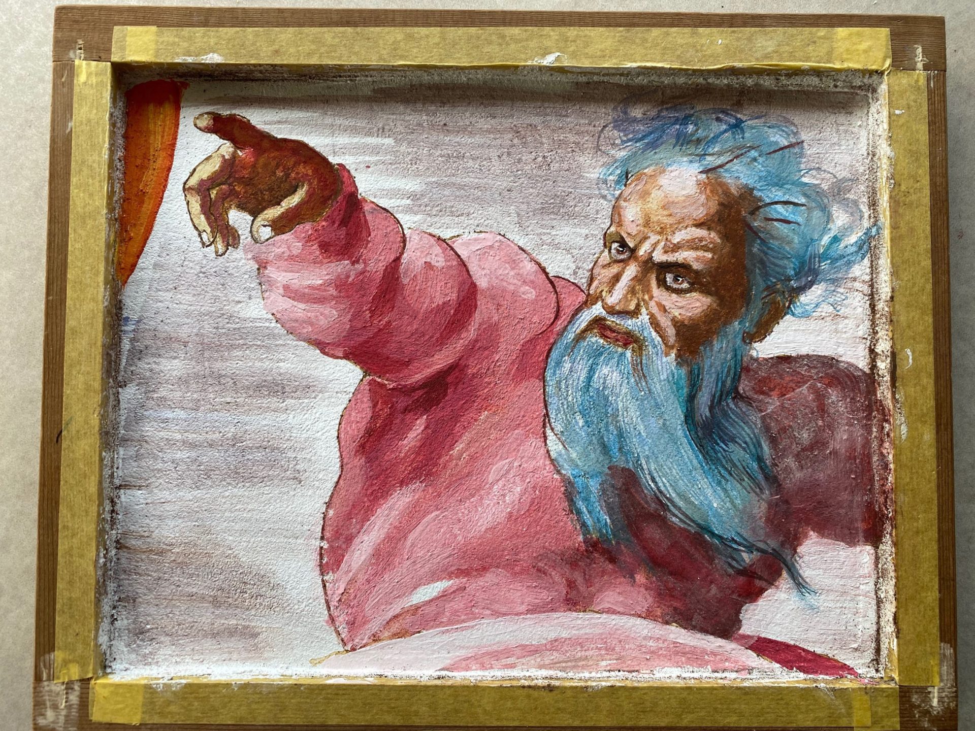 8.ジョルナータ(giornata)1日の仕事量の意味で、1日描ける範囲のみイントナコ intònacoを塗る。大作の場合は1日の範囲のみイントナコ intònacoを塗り、その範囲だけ描く。翌日は次の日の範囲のみイントナコ intònacoを塗り、その範囲のみ描く。これを繰り返して描き進んでゆきます。
