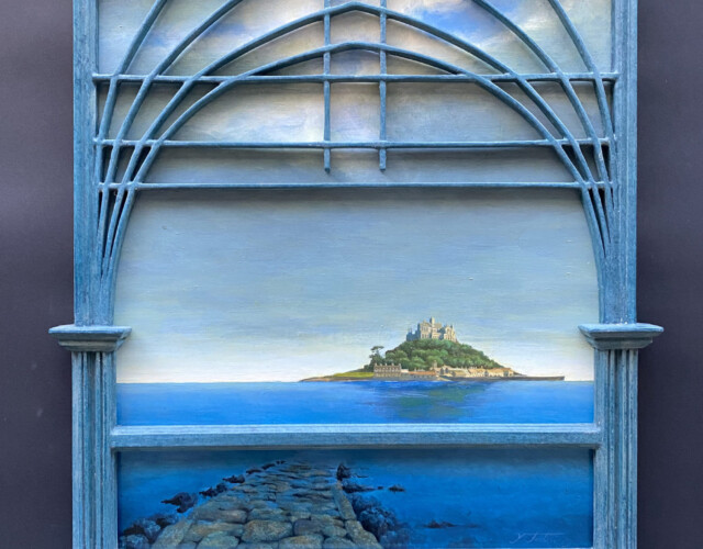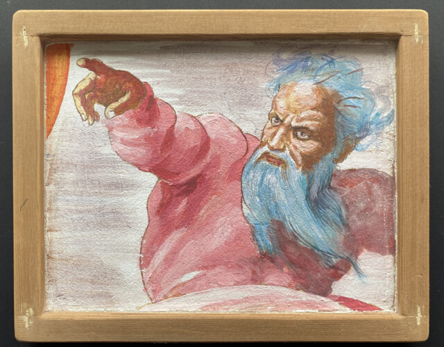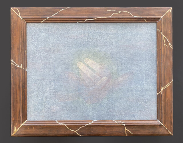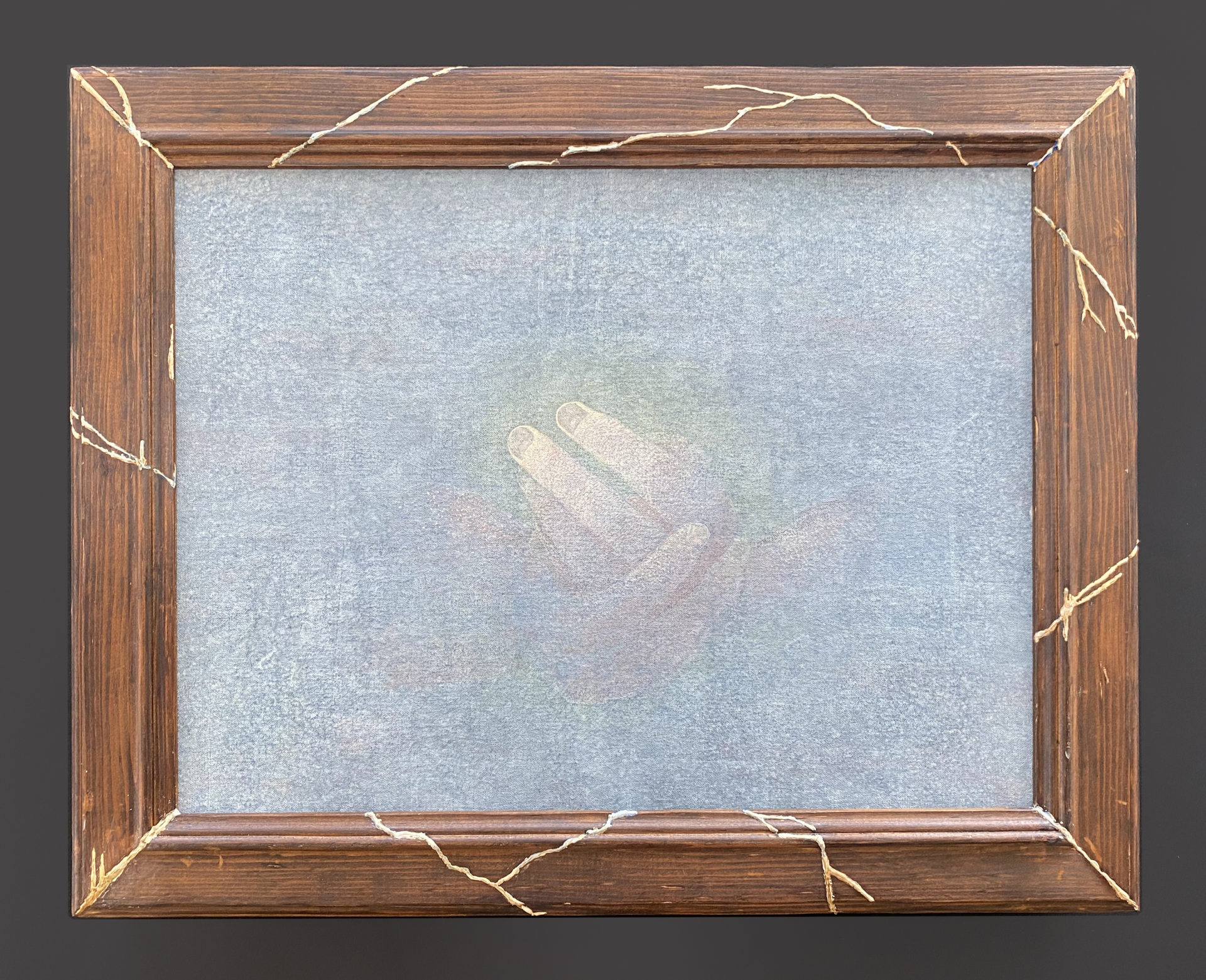 この度の作品は収められた絵では無く、周囲を飾る額縁にあります。以前描いた中から、額縁のサイズが合う絵を用いました。はるか昔に学んだ油彩の古典技法により、小さな自然をサラッとなぞったもので、今回製作した額が念頭にあれば、もう少し異なった絵であったろうと、いささかちぐはぐな感想を持っています。イタリアの古典技法による額縁製作を今学び始める事は、人生の終盤にゲームが振り出しに帰ったような不思議な感慨と嬉しさを与えて下さり、目に見えぬものに感謝いたします。