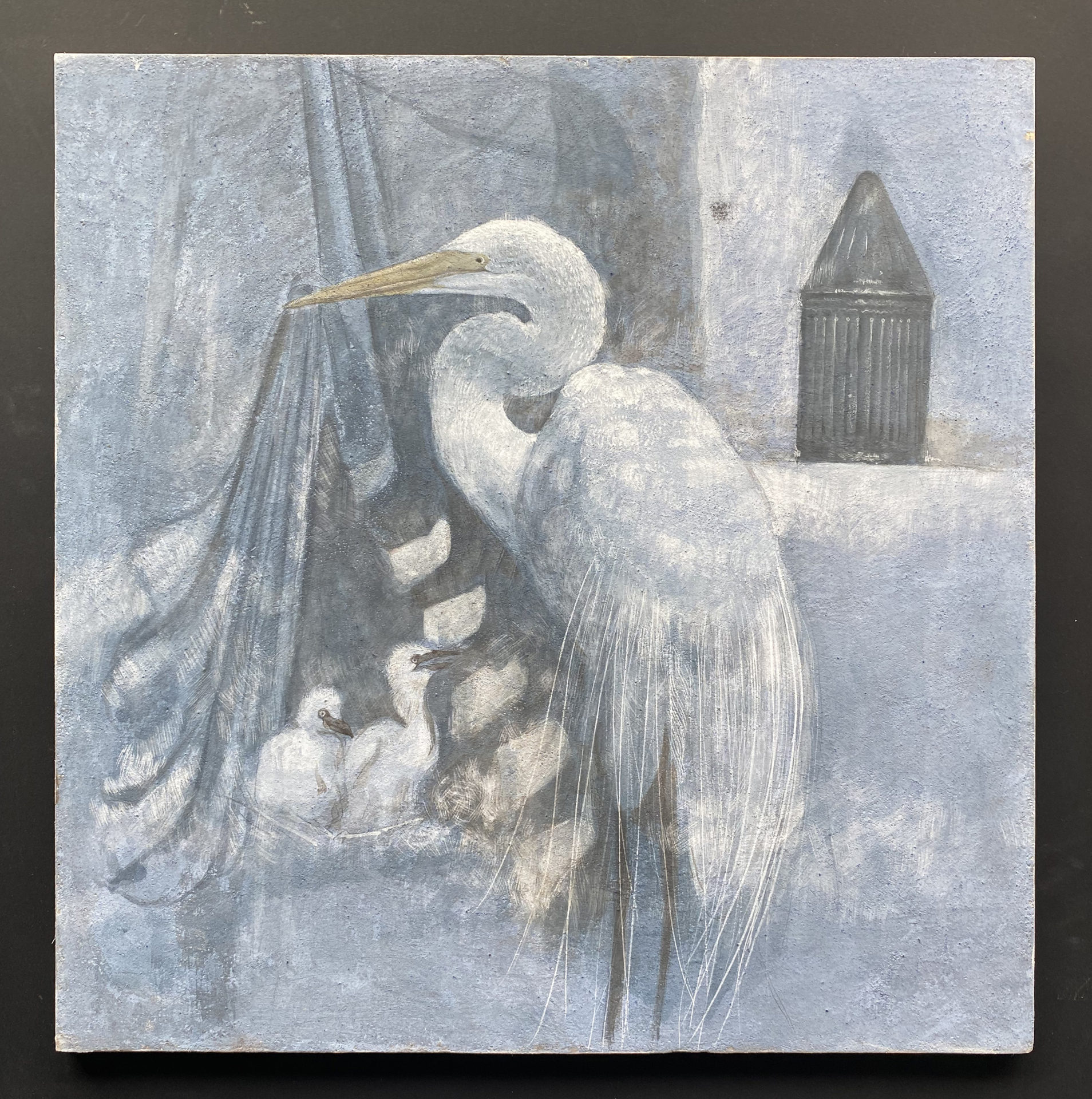 私が制作への原動力として根底に持ち続けているのが、動物たちへ向ける”畏敬の念”です。動物たちが持っている可愛らしさや美しさに、何らかの象徴としての意味を重ね合わせながら描いております。私が”テンペラ”で制作をしているのは、この技法がかつての中世ヨーロッパにおける信仰する神を描くための手段でもあったからです。テンペラが持つ歴史的背景は、私の制作意図と非常に良くマッチして通ずるものがあります。一筆一筆を軌跡として遺しながら、時間を重ねる喜びをいつもしみじみと感じています。