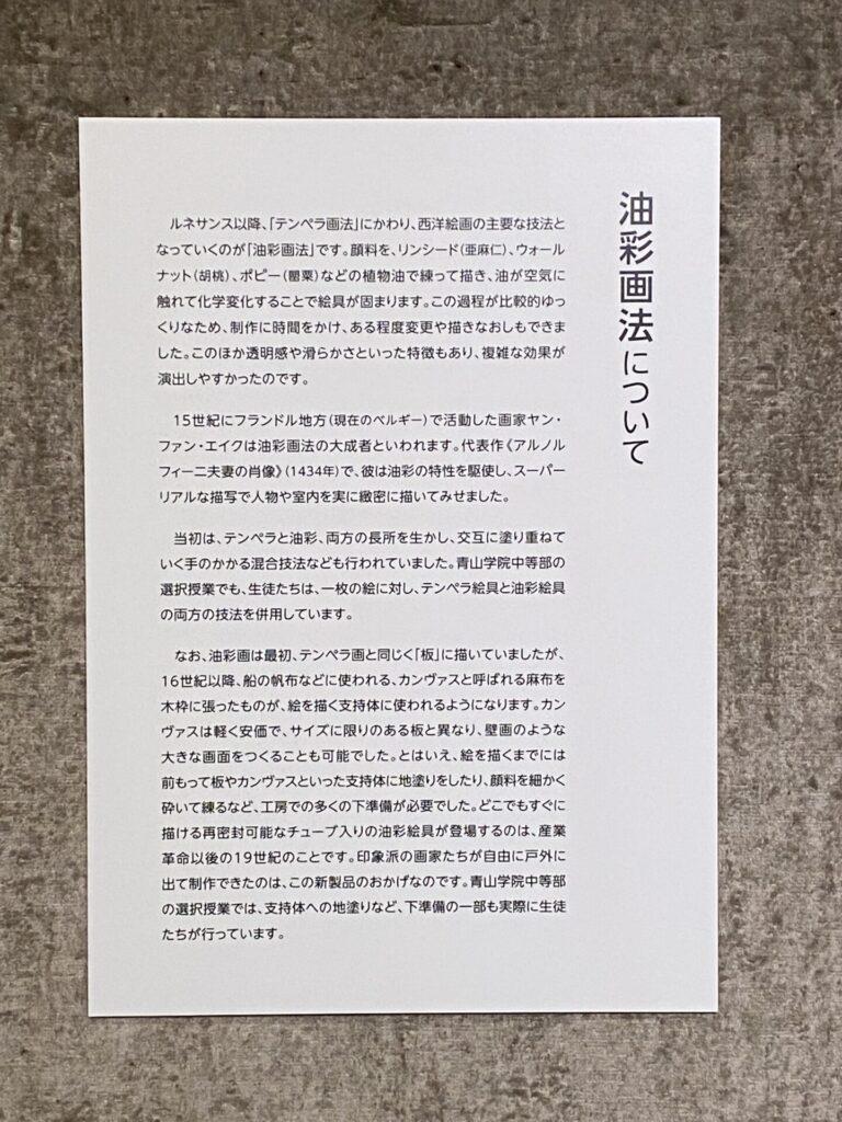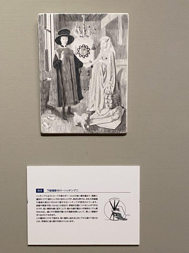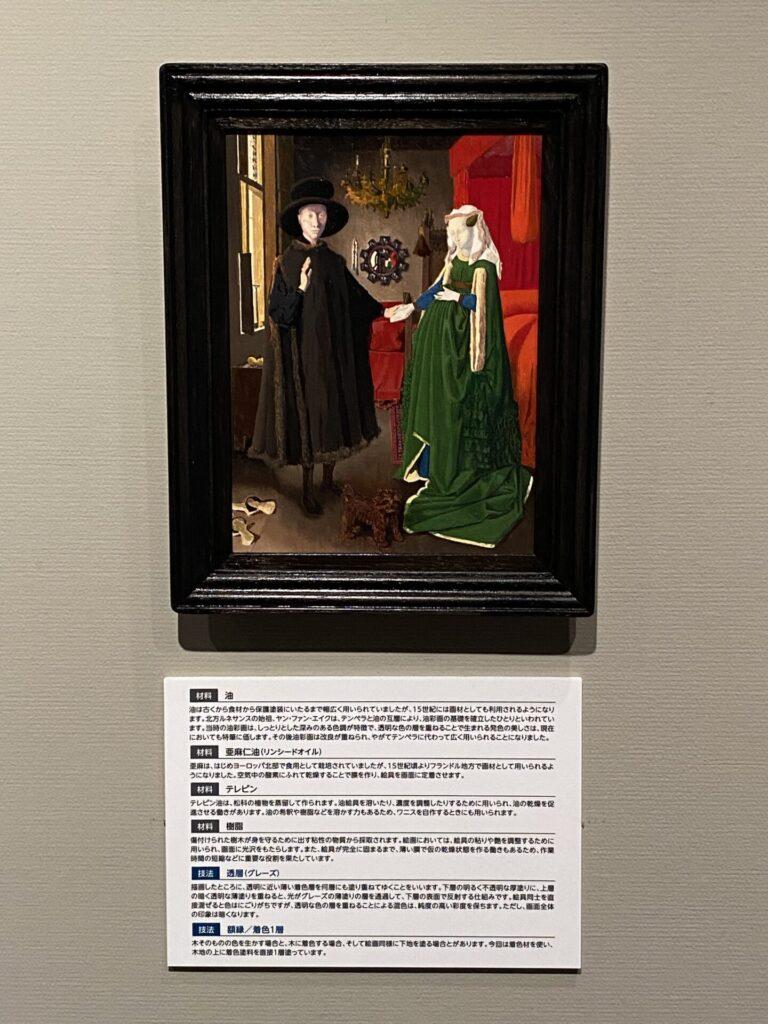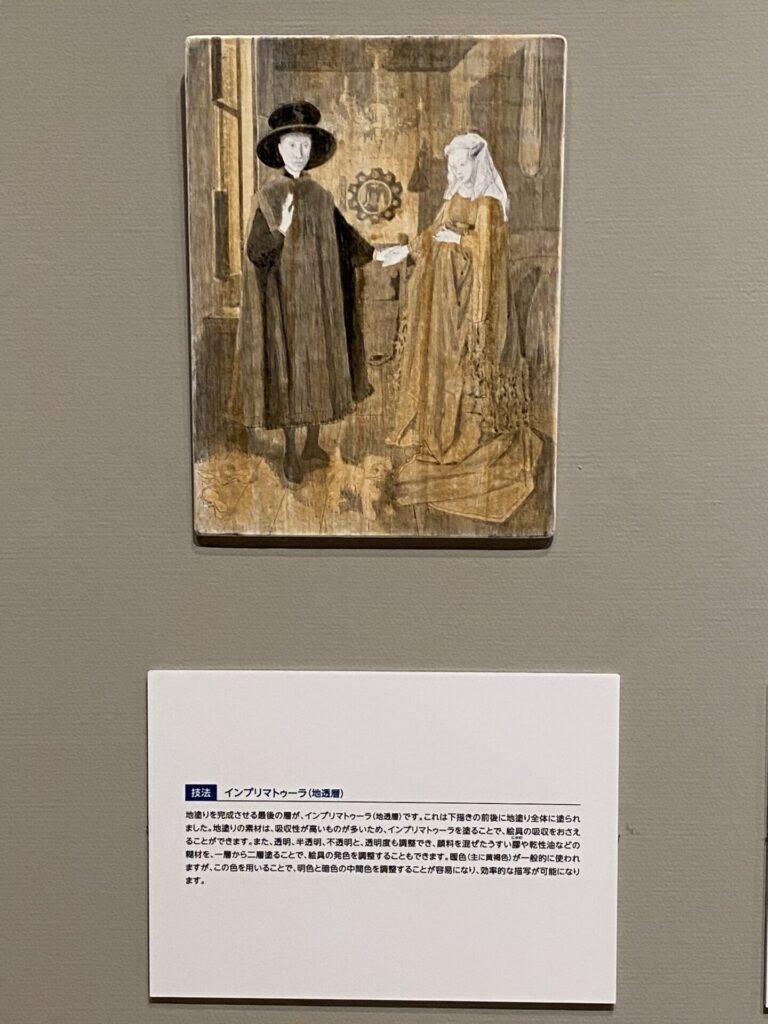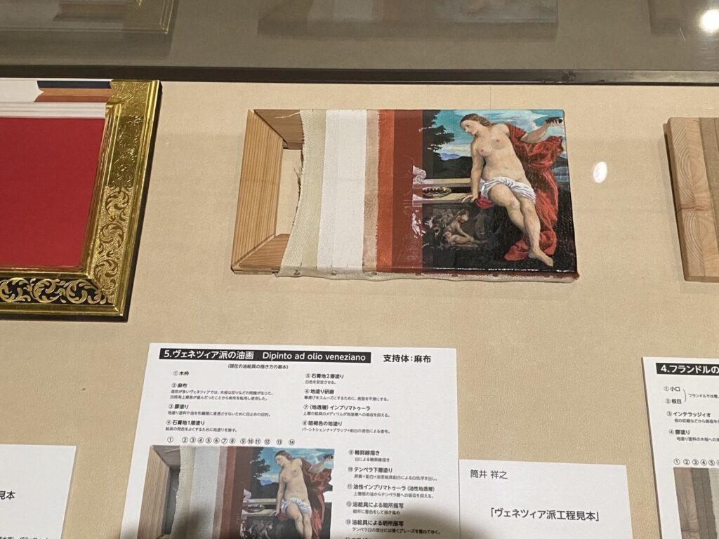 油画のフランドル派の工程見本の展示